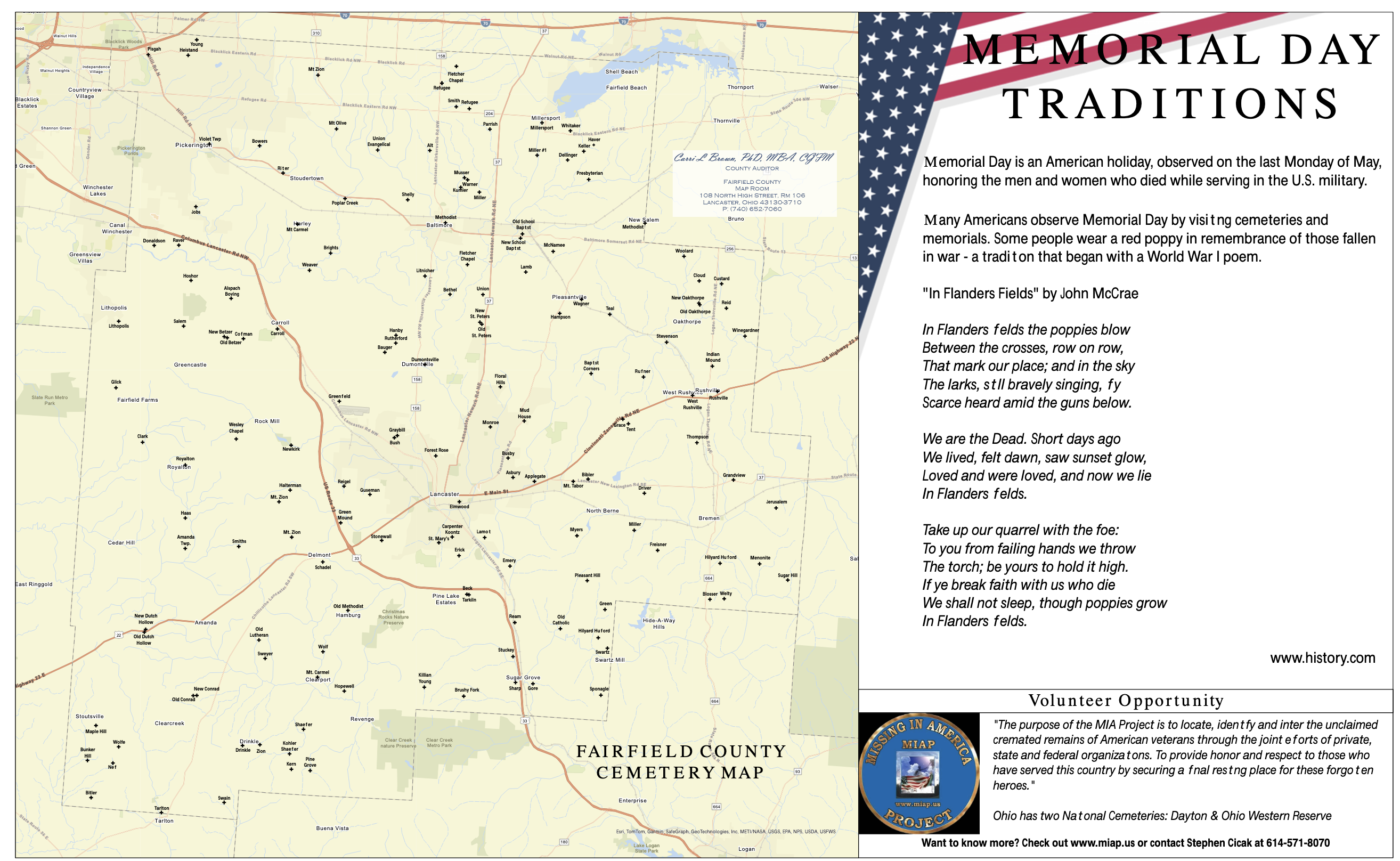 The May Map of the Month features over 150 cemeteries in Fairfield County, along with Memorial Day traditions to remember those who lost their lives in battle.