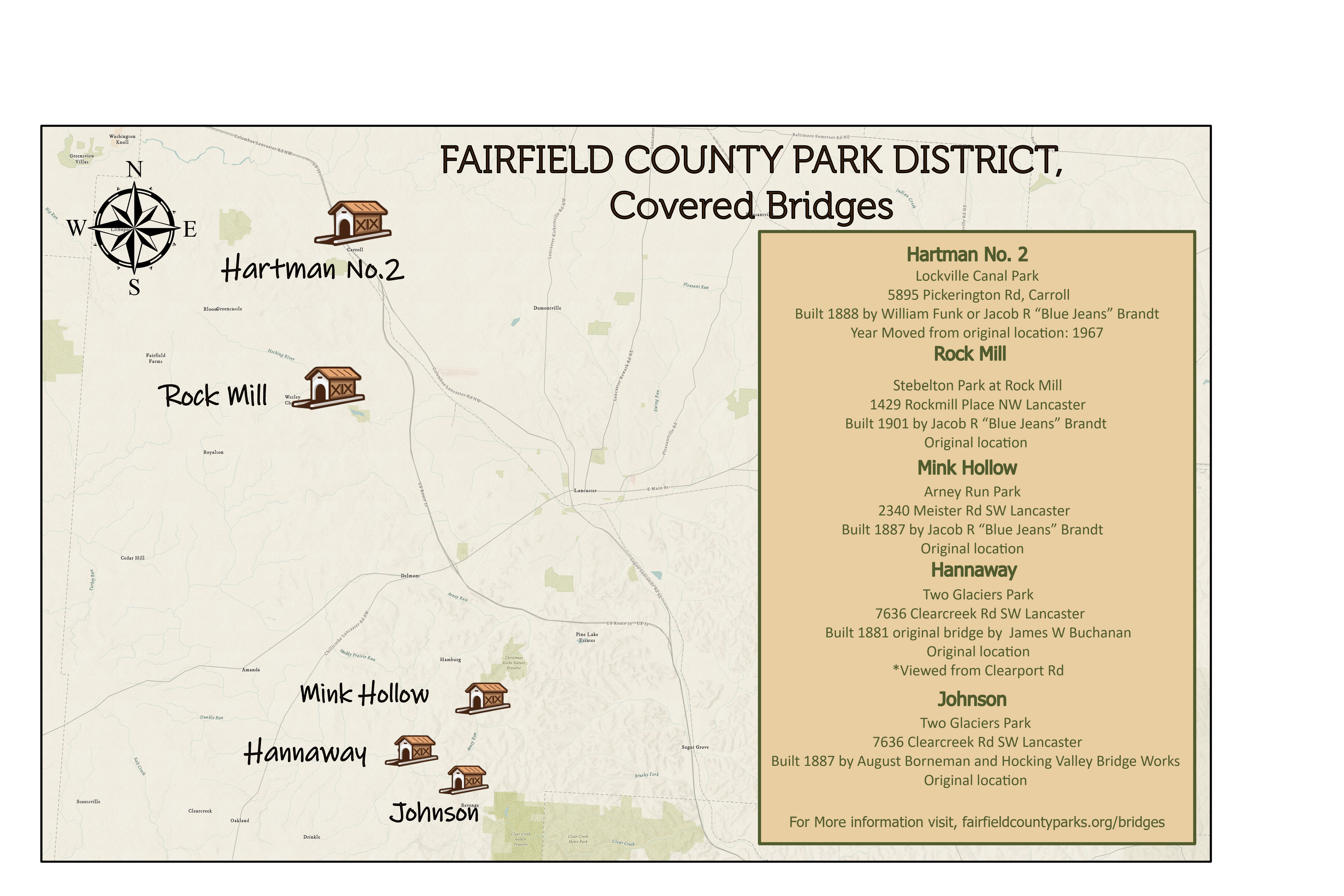 The April Map of the Month is here! This month’s map highlights the five covered bridges located in Fairfield County Park District parks.