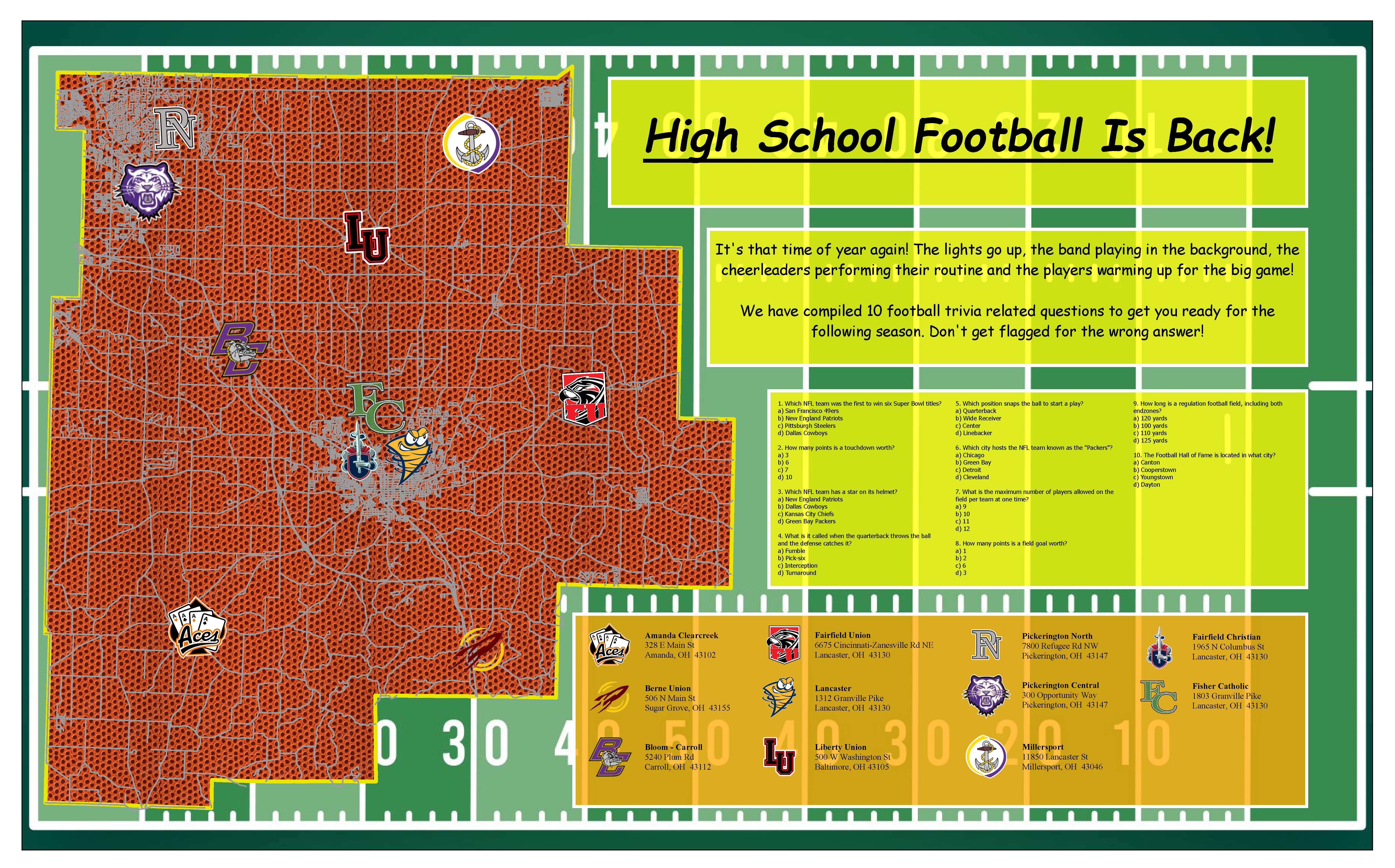 In honor of high school football season, this map provides the locations of the high school football stadiums in Fairfield County.