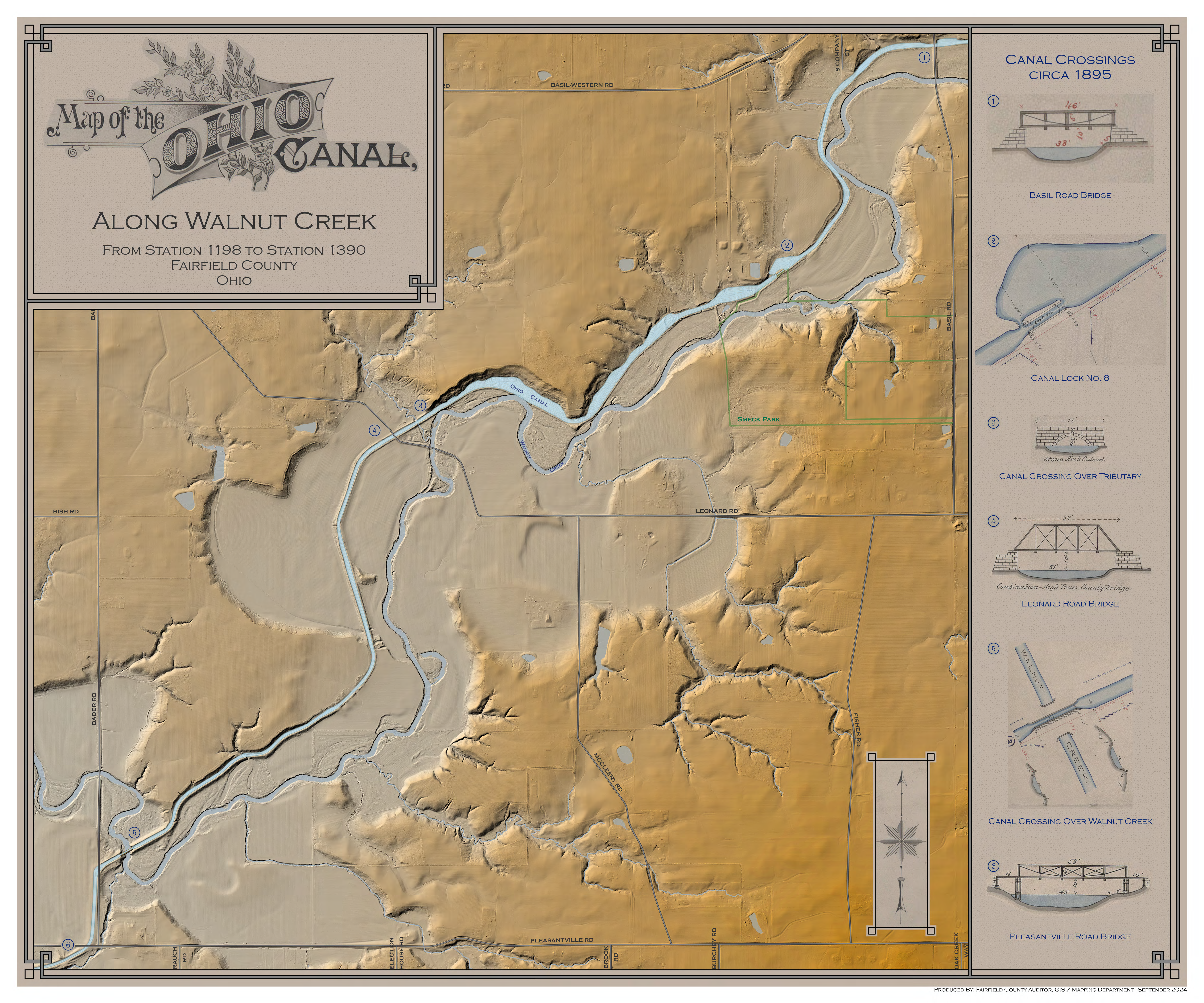 The September Map of the Month is a LiDAR view of the Ohio Canal along Walnut Creek highlighting the infrastructure that was built to make the canal system possible. Looking closely at the map, you can also see how Walnut Creek has changed course over the years.