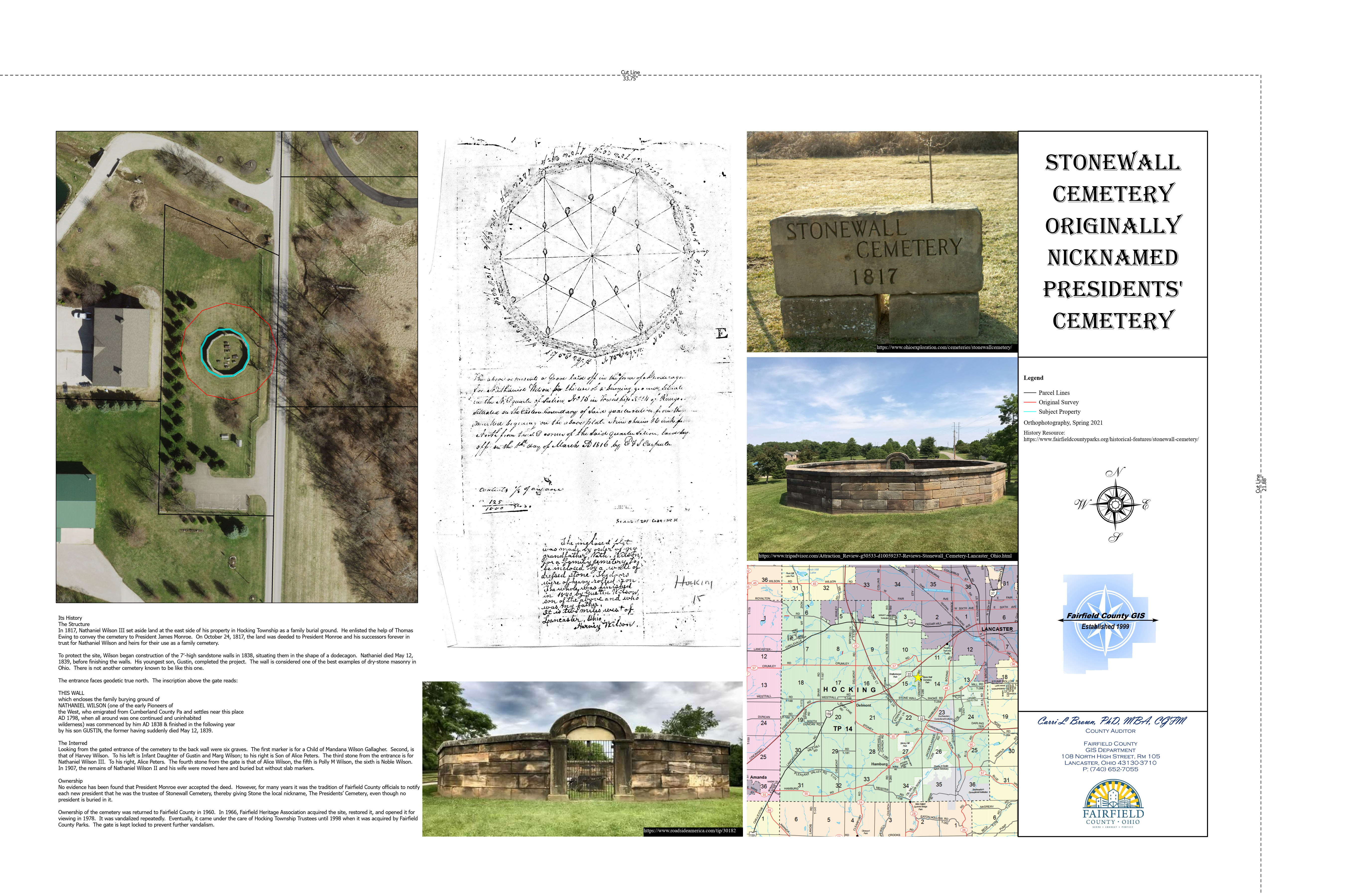 The February Map of the Month features Stonewall Cemetery in Hocking Township. The cemetery was conveyed to President James Monroe in 1817 with the President of the United States serving as trustee of the cemetery until ownership was returned to Fairfield County in 1960.