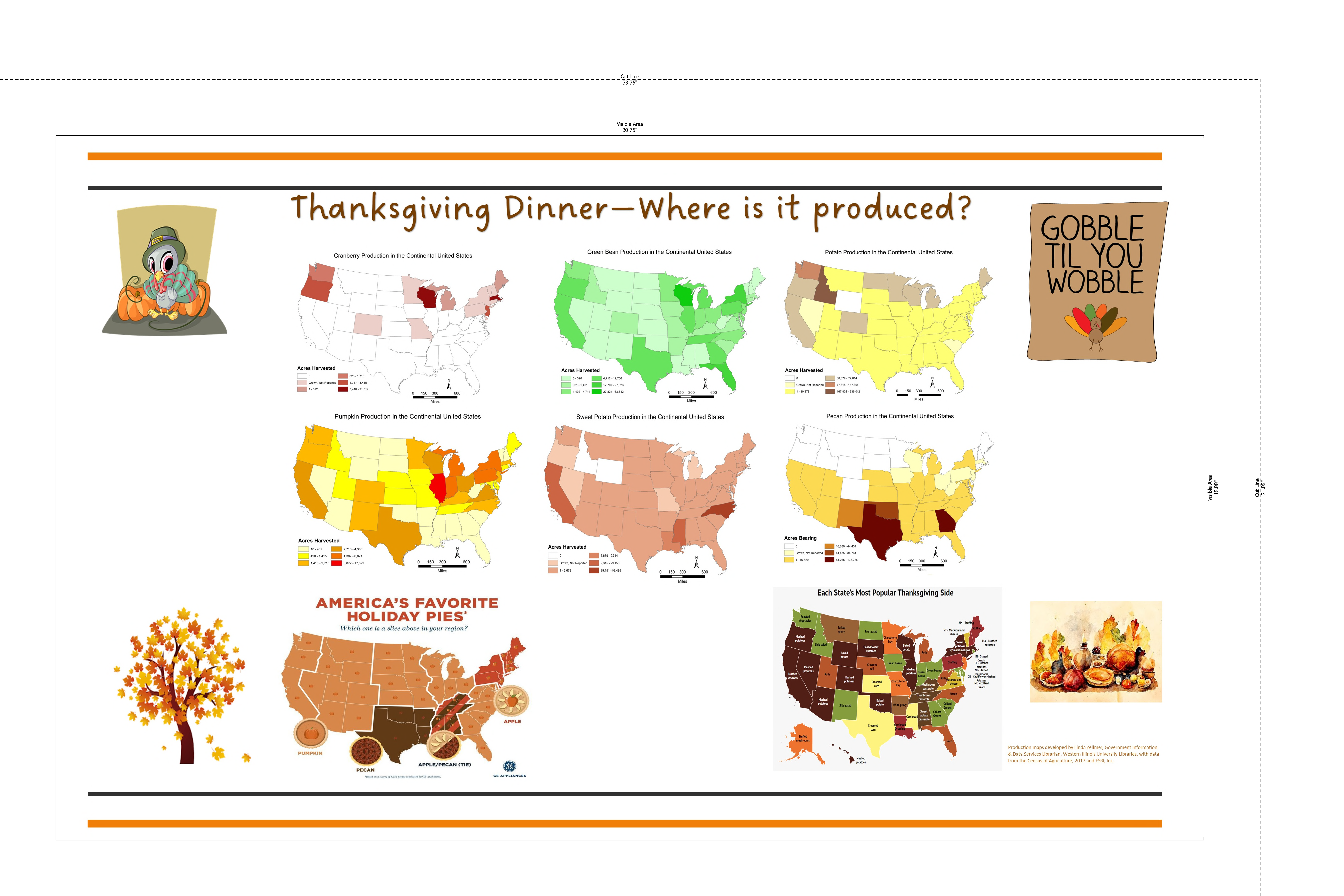 The November Map of the Month focuses on where traditional Thanksgiving foods are grown or produced.